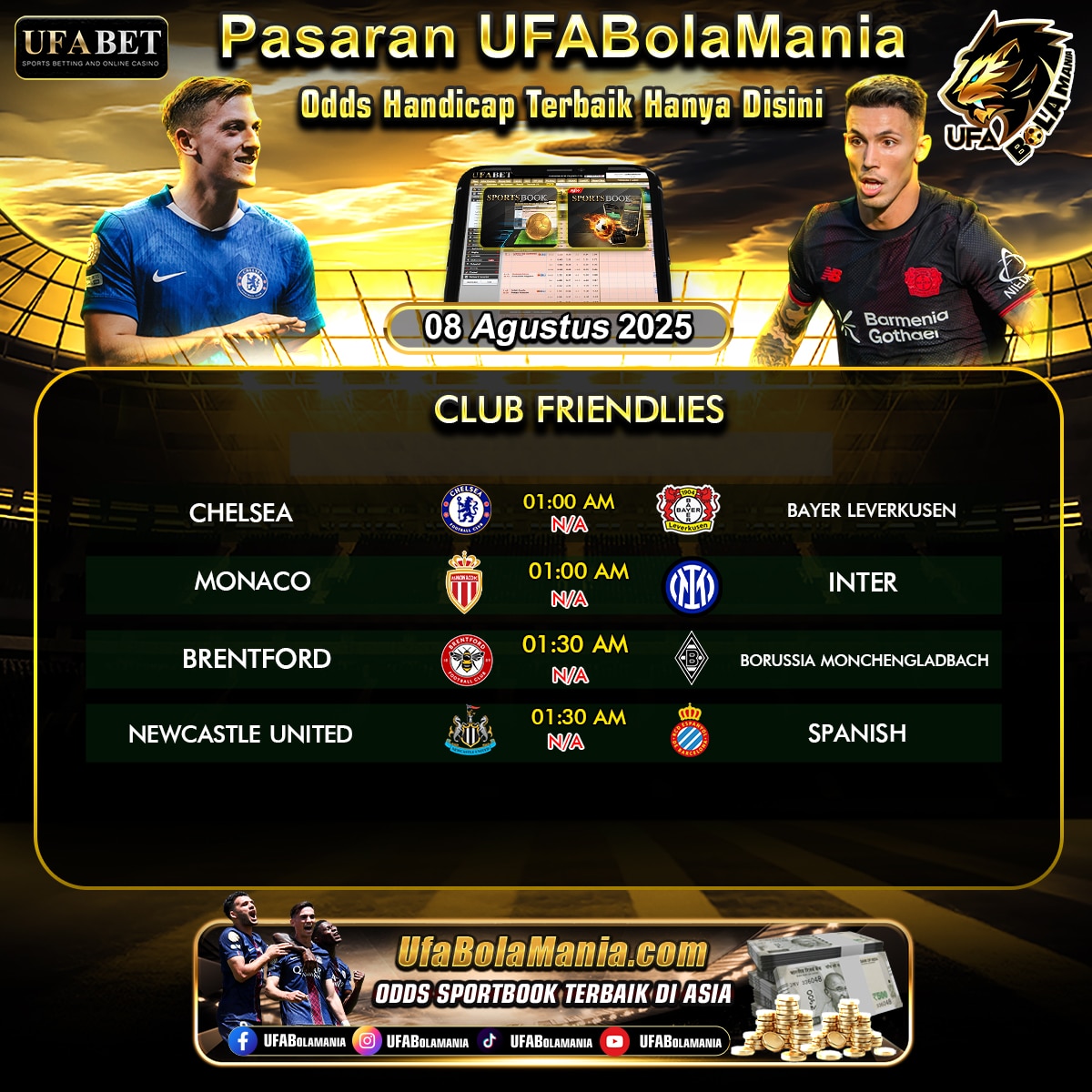 Jadwal Bola UFABolaMania 08 AGUSTUS 2025
