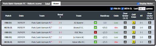 5 laga terakhir Psg :