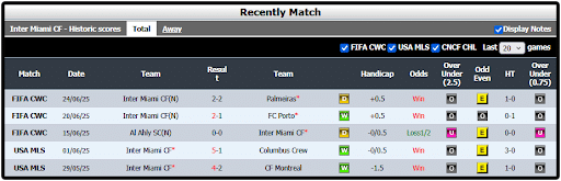 5 laga terakhir Inter Miami :